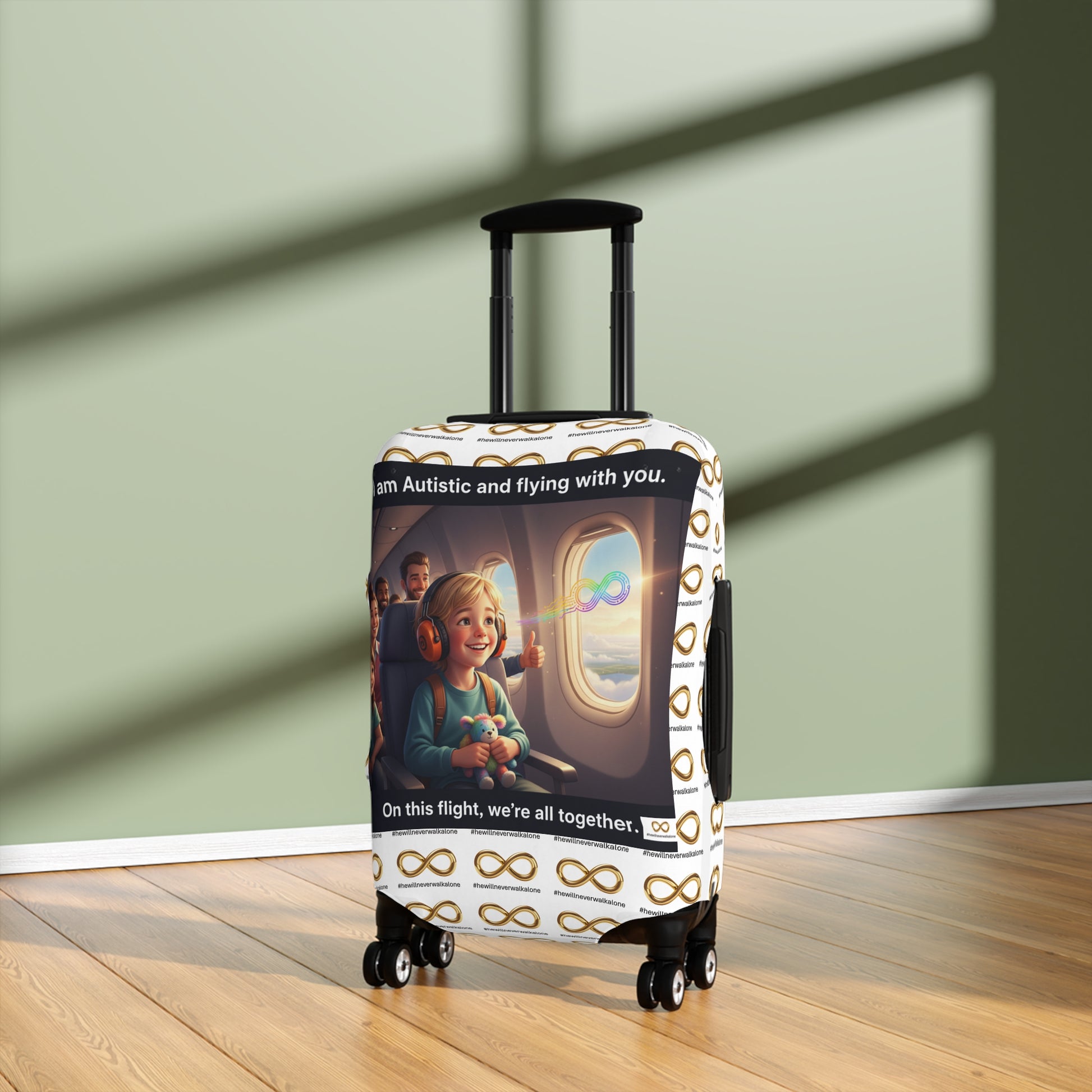 Autistic Pride Luggage Cover | Cute Travel Accessory, Wheelie Case Protector, Gift for Travelers, Autism Awareness, Flying Together Design